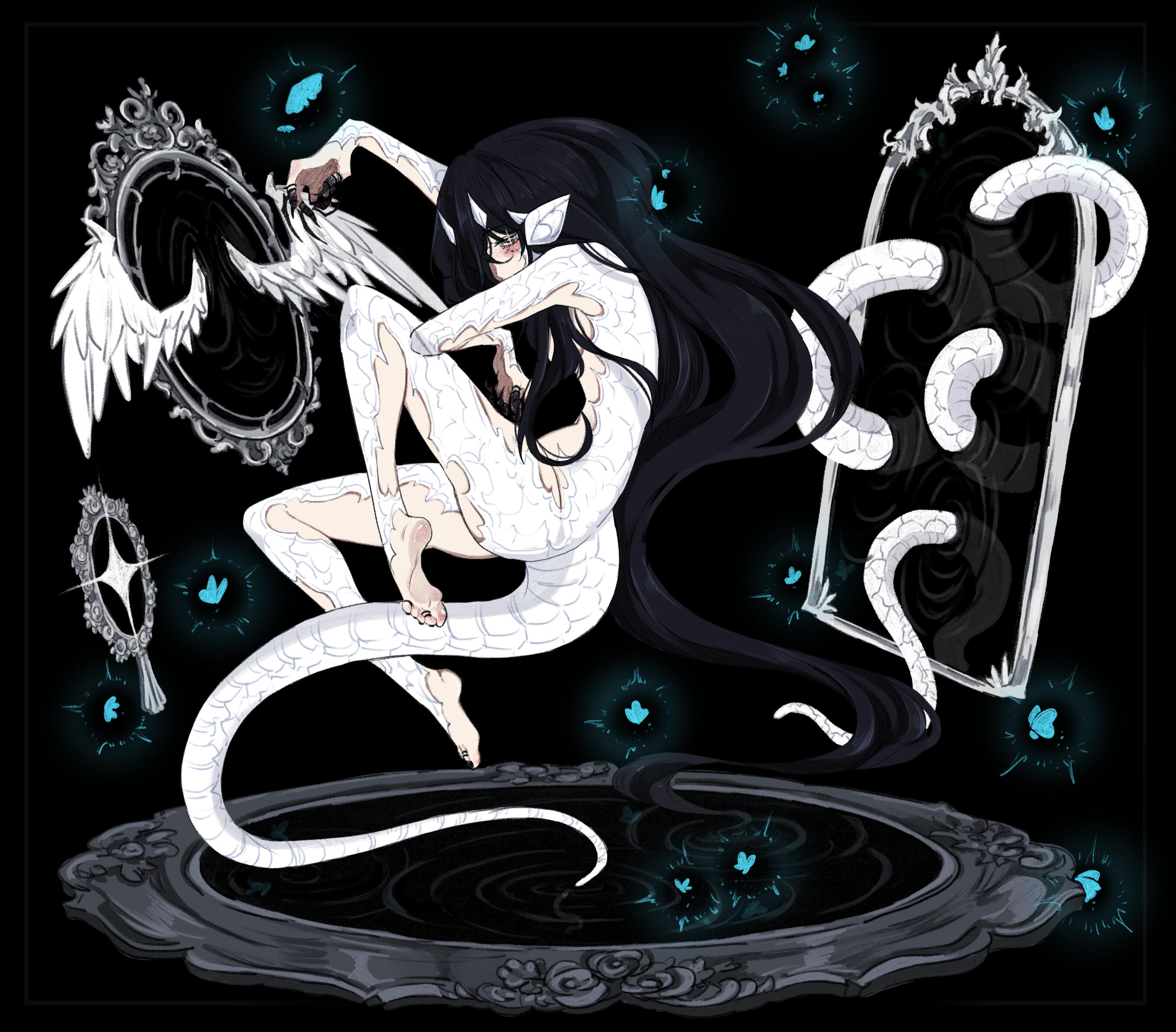 ?. her flesh is white as porcelain and her scales pearlescent.